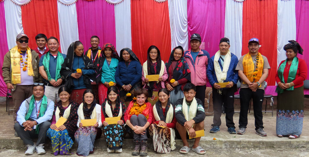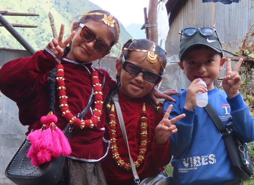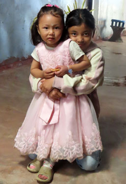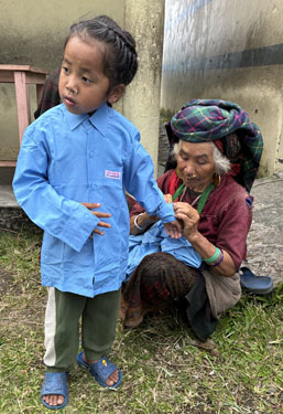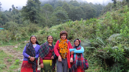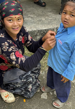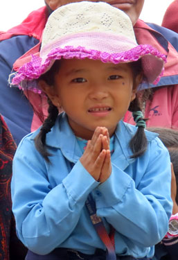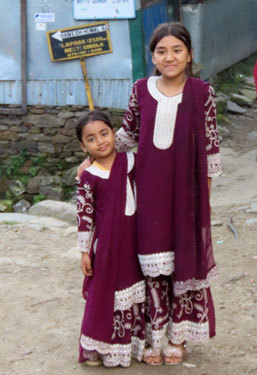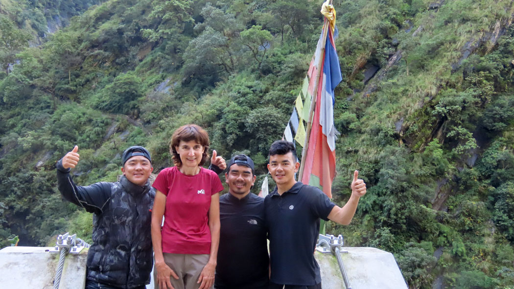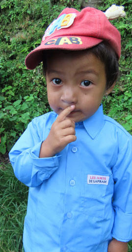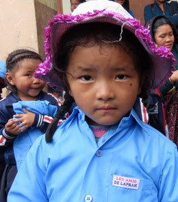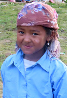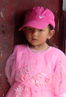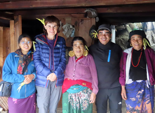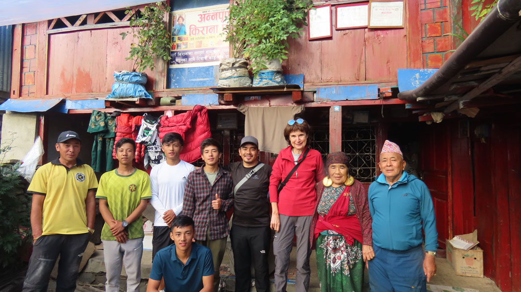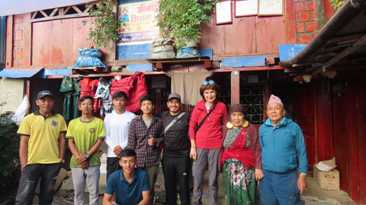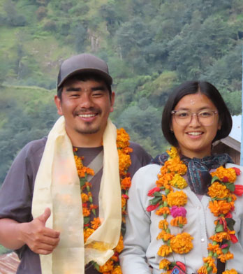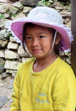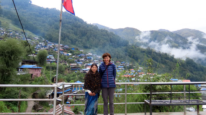 Devant Laprak, avec la fille de Pony, propriétaire d'un lodge à Laprak. Kanchha
