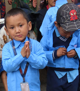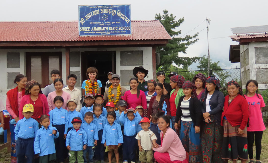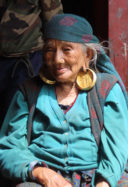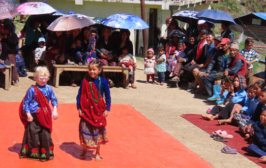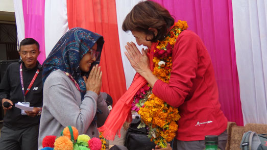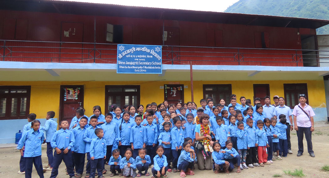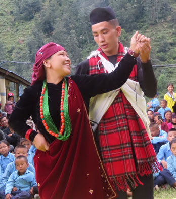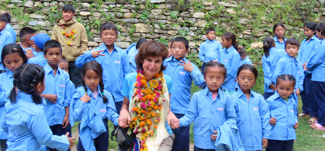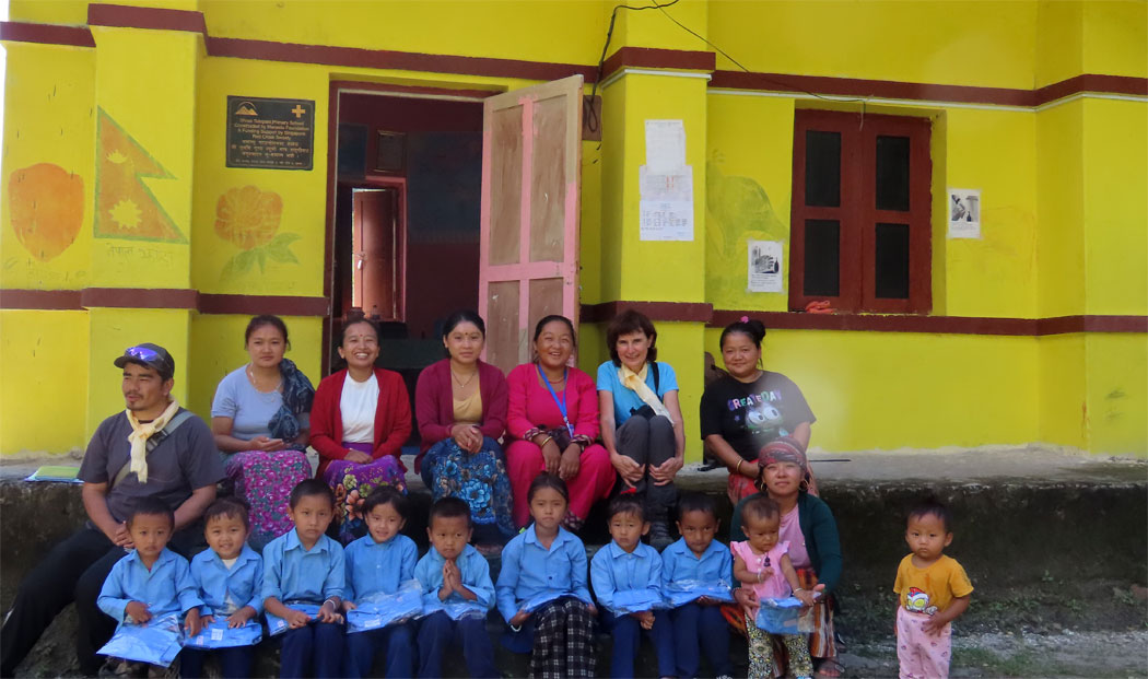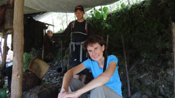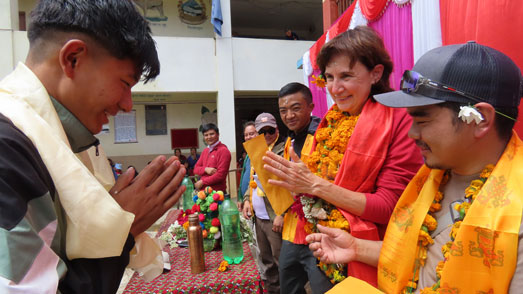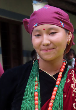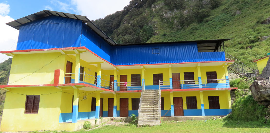 Devant Laprak, avec la fille de Pony, propriétaire d'un lodge à Laprak. Kanchha
