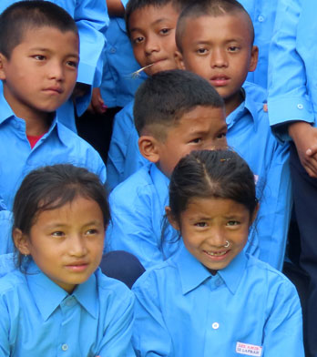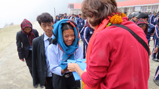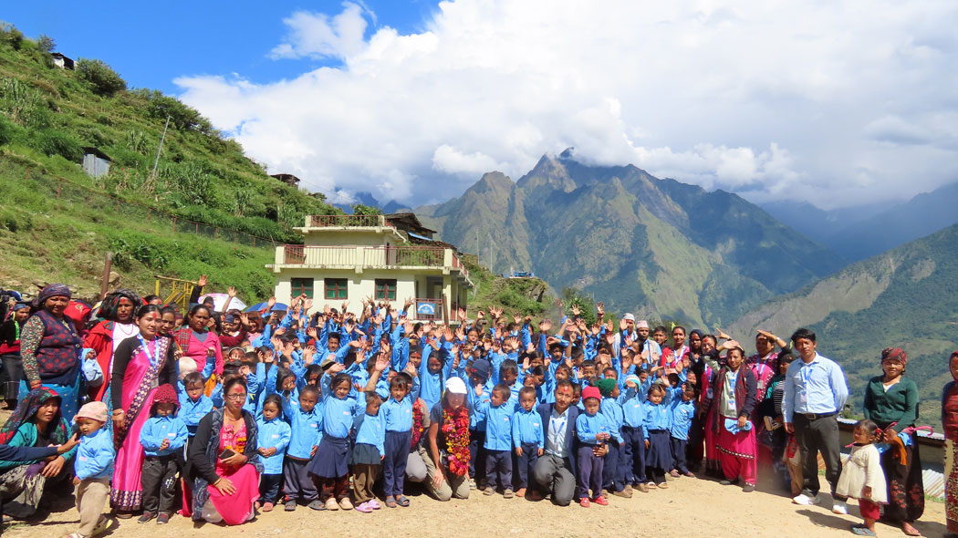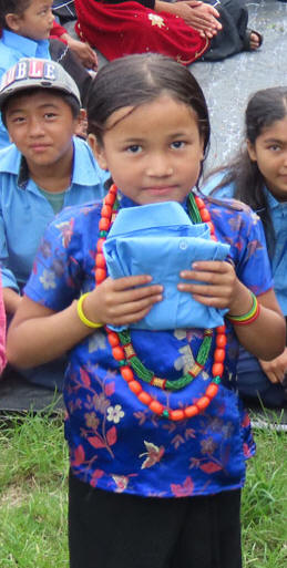 distribué les chemises bleues aux élèves de tous les villages aidés