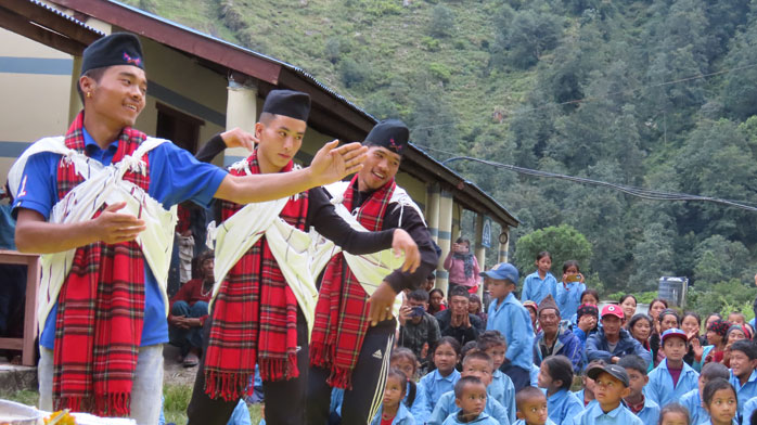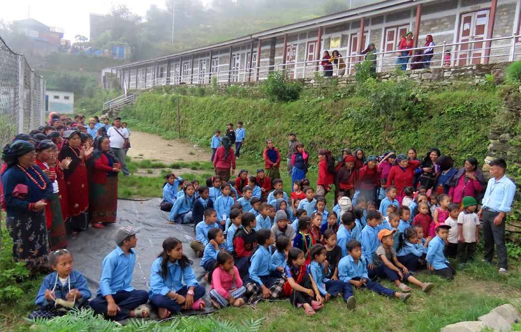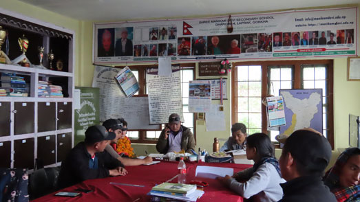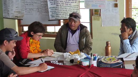 Réunion, avec le directeur de l'école de Laprak, les professeurs et
