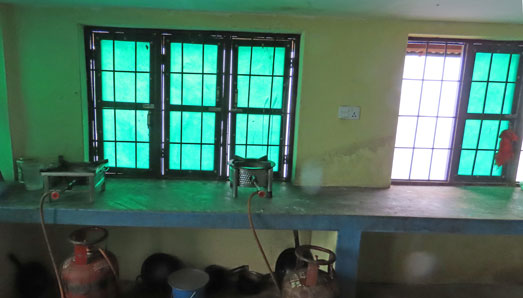 L’électricité est très instable à Keraunja : la cuisine est sombre (il faut ouvrir les fenêtres)